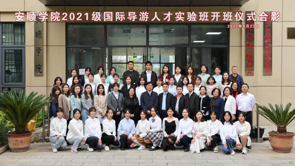 9月23日下午,2021级国际导游人才实验班开班仪式在安顺学院安道楼第一会议室隆重举行,党委副书记、校长陈云坤,副校长张来,党委委员、教务处处长杜志明,宣传部、发规处、团委、人事处(教师工作处)、计财处、学生资助中心、旅游学院负责人,外国语学院全体班子成员,2021级国际导游人才实验班(下文简称“实验班”)的任课教师与学生参加了开班仪式。
